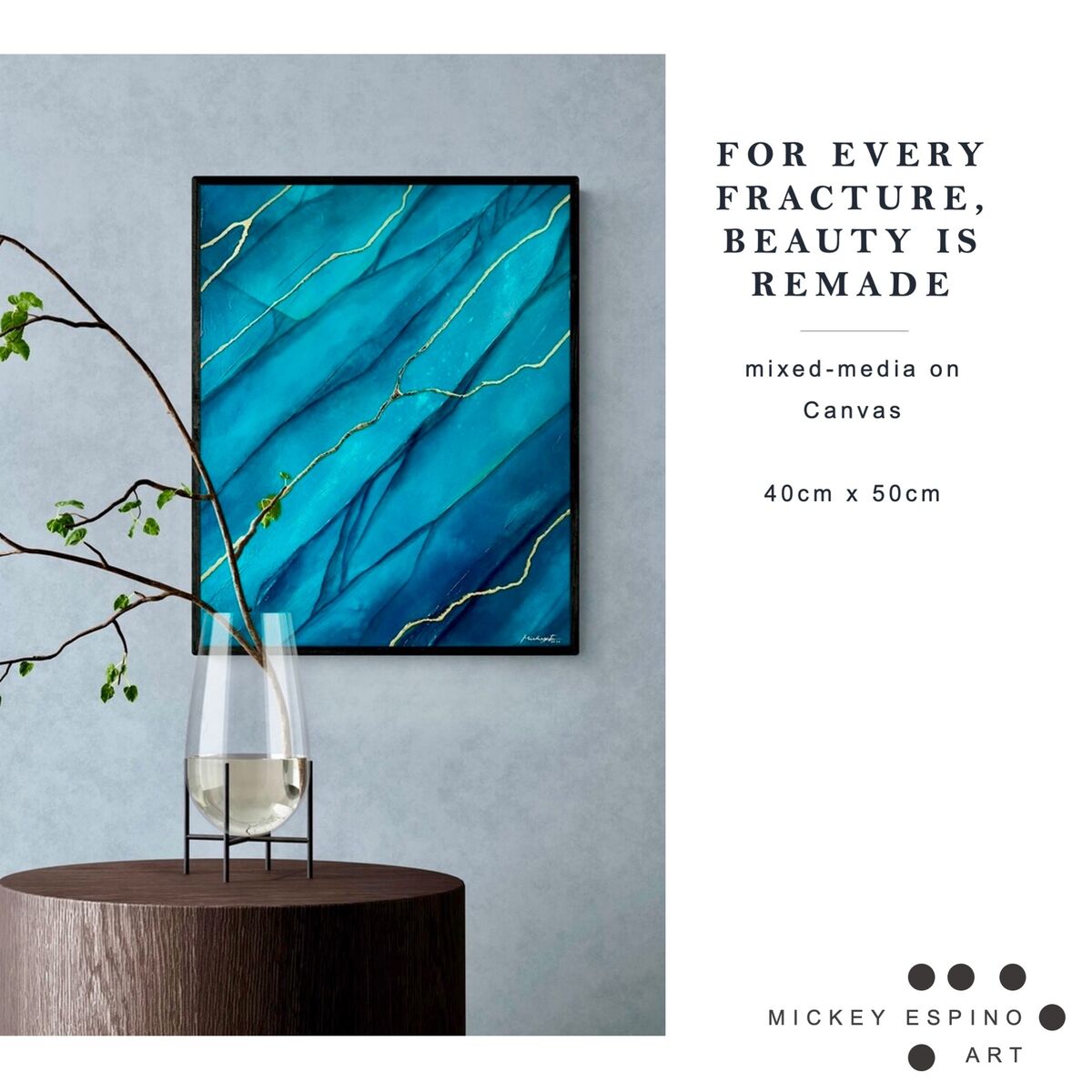 [SOLD] ______ Kintsugi elements inspired, Defying Gravity is a narrative of personal transformation. It tells a story of resilience and transcendence. This piece represents the idea that even in our most paralysing moments, we can find strength and beauty. It reflects the journey of rising from our rock bottom moments – a testament to the human spirit's ability to mend, heal, and, ultimately, transcend the force of life’s gravity.